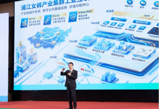 顾问代表胡平在致辞中指出,在4万亿的中国服饰市场中,传统企业正面临红利消失、模式陈旧等多重挑战,破局关键在于拥抱“全链路数字化运营体系”。他以聚衣堂“3年20亿销量”为例,阐释了通过“单品数字化”打造爆品、依托“全链路智能化”构建竞争力的路径,并针对浦江打造“爆品女裤之都”的定位,建议通过建立快反管道和产品数据库,推动产业从“制造”向“智造”跃升,为浦江纺织服装产业的数智化转型提供了清晰可行的实施方向。