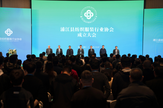 2025年12月7日下午,浦江喜来登酒店高朋满座、气氛庄重而热烈。浦江县纺织服装行业协会成立大会在此隆重举行。来自浦江县政府、省市行业协会、顶尖专家学者、金融机构及全县近400家纺织服装企业的代表齐聚一堂,共同见证浦江纺织服装产业发展历程中这一里程碑式的时刻。