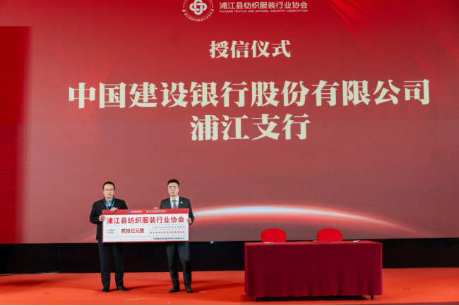 中国建设银行浦江支行行长马长生与张斌杰会长签约,授予协会 20亿元 意向授信。两大银行总计 30亿元 的授信支持,为浦江纺织服装企业注入了强大的金融动能,坚定了大家扩大再生产、投身技术革新的信心。